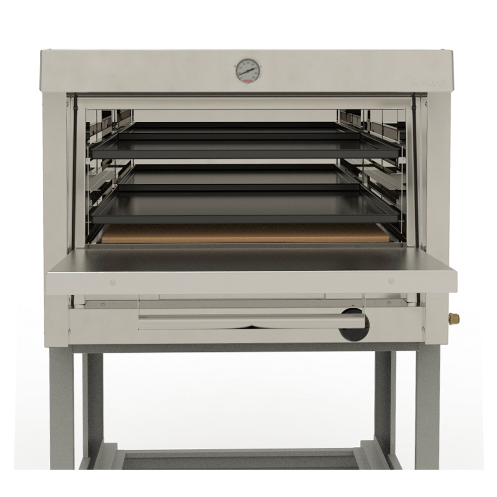 La cámara del horno industrial MAIGAS está fabricada completamente con acero inoxidable, además incorpora ladrillos refractarios para homogenizar temperatura de cocción.