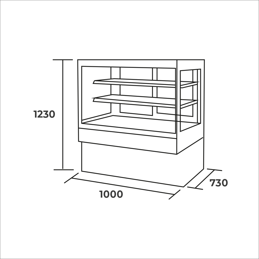 Vitrina Pastelera Recta 375 lts. 1000x730x1230 mm.